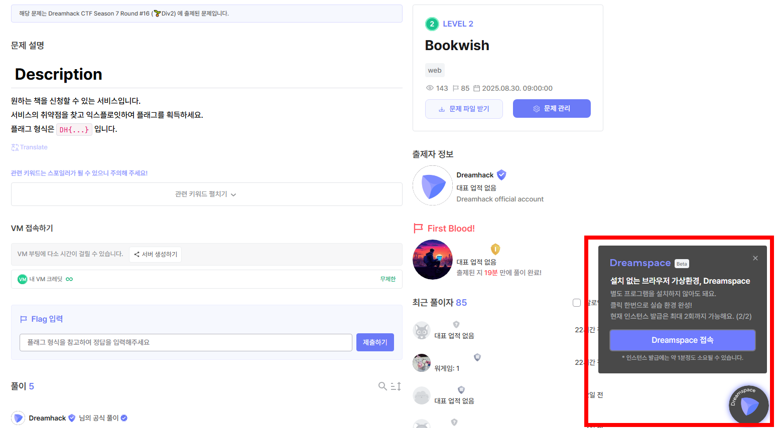 저번 달의 드림핵 노트를 통해 소개된 Dreamspace!