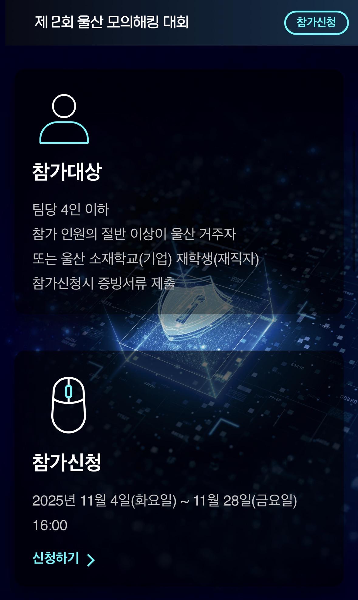 울산 모의해킹 대회 팀원 구합니다.(울산 거주 2명)