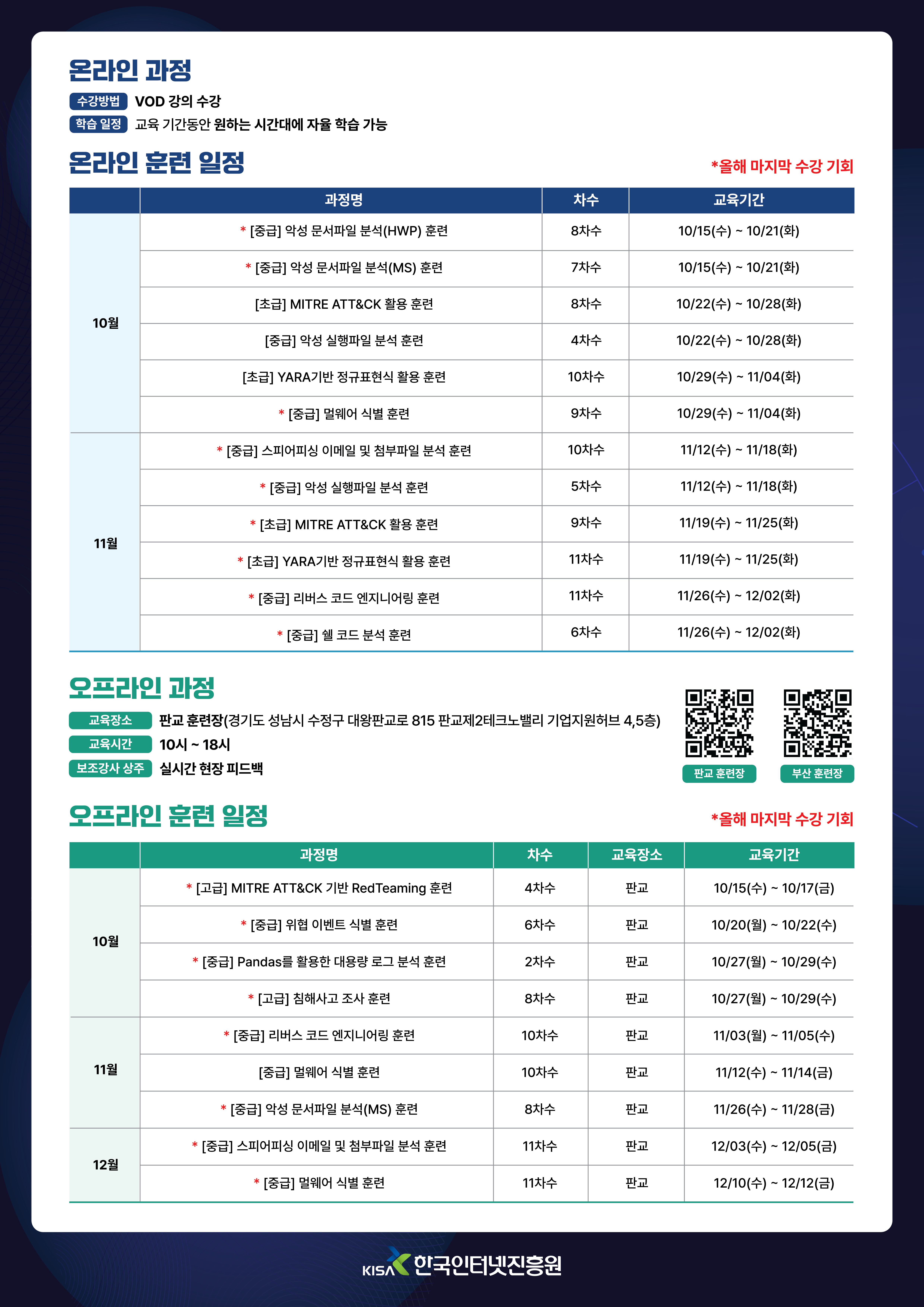 한국인터넷진흥원(KISA) 주관 "실전형 사이버훈련장" 침해사고 대응훈련 교육생을 모집합니다!🚀