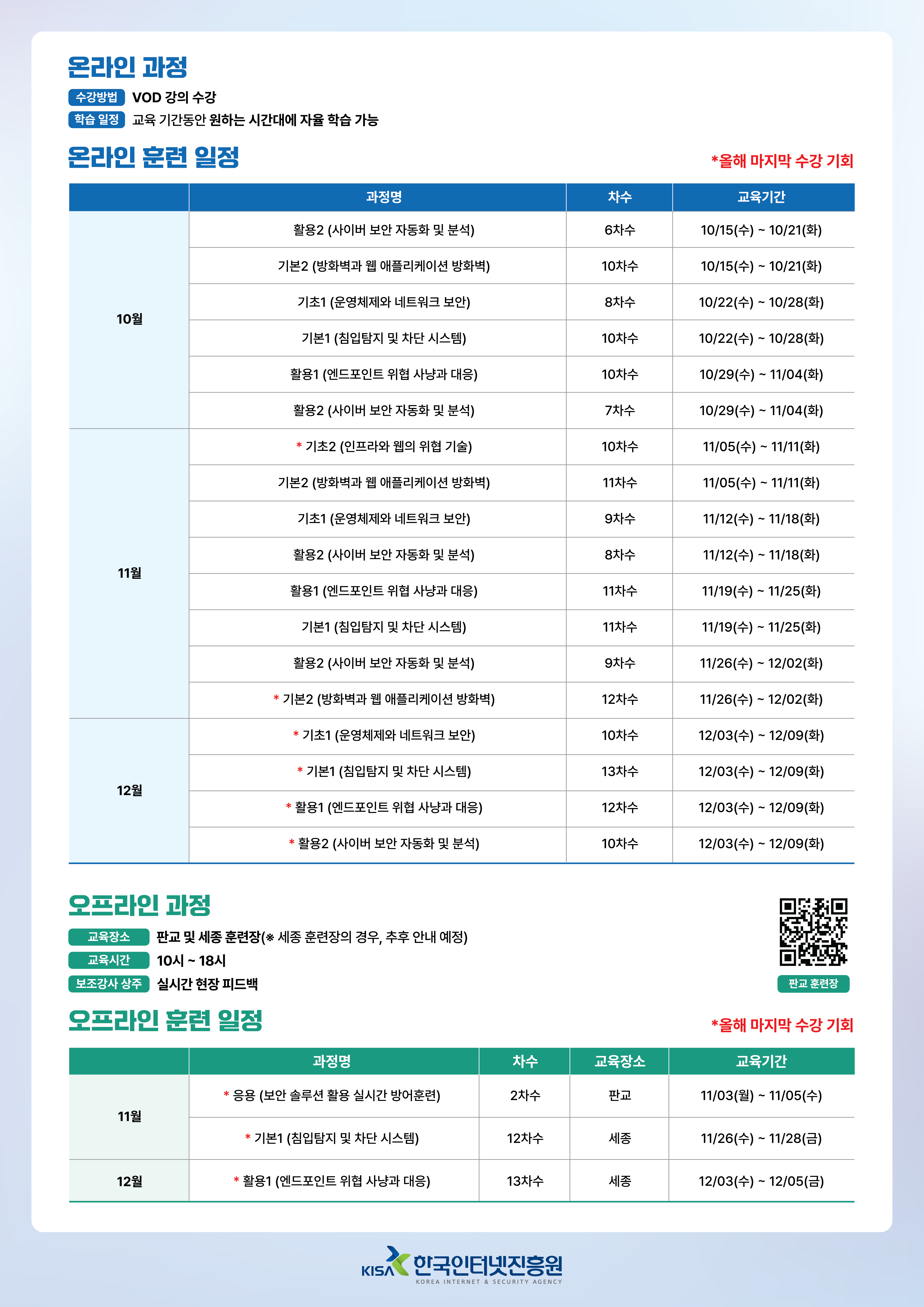 한국인터넷진흥원(KISA) 주관 "실전형 사이버훈련장" 교육생을 모집합니다!🚀