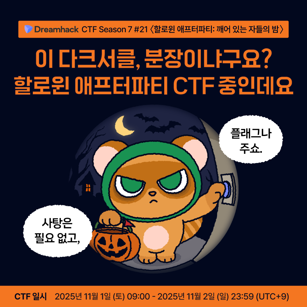 โป ์ถ์ฒจ์ ๋๋ฆผํต ๊ณต์ ๋์ค์ฝ๋ ์๋ฒ์ #dh-ctf-season7 ์ฑ๋์์ ์งํํฉ๋๋ค.