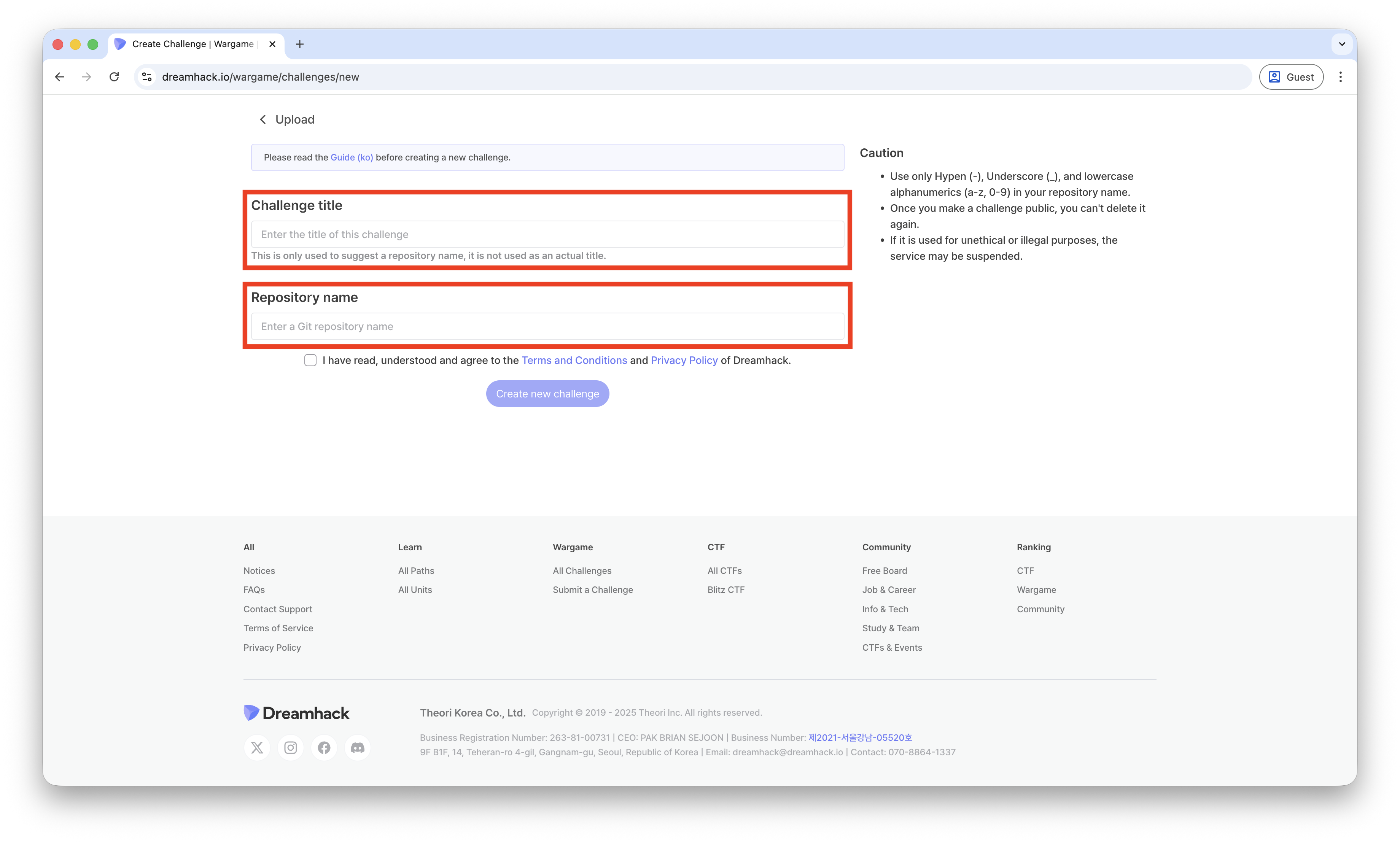 드림핵에 워게임 문제를 생성하는 방법을 알아보겠습니다.