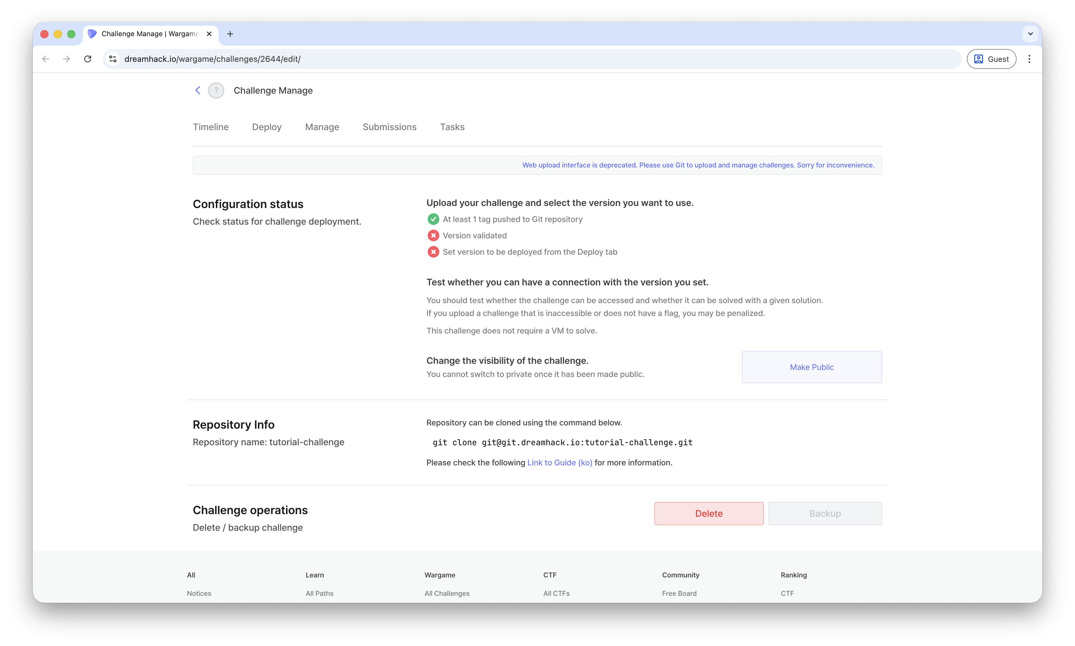 Dreamhack은 문제의 버전 관리의 용이함을 위해 Git을 내부적으로 사용하고 있습니다.